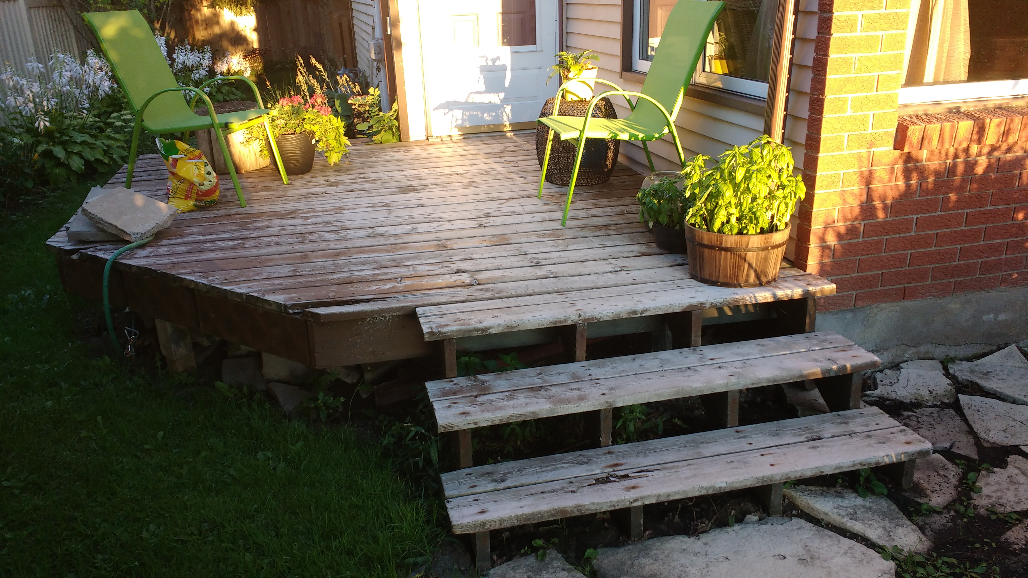 Probably a 20 year-old deck, several deck blocks had either crumbled to nothing or sunk into the ground. Re-instated all (some new) dek-blocks and the 4x4 post supports, added some joists since we were moving to 5/4" cedar instead of 2x6 pt; and added the lattice skirt so the dog doesn't get stuck underneath the deck!