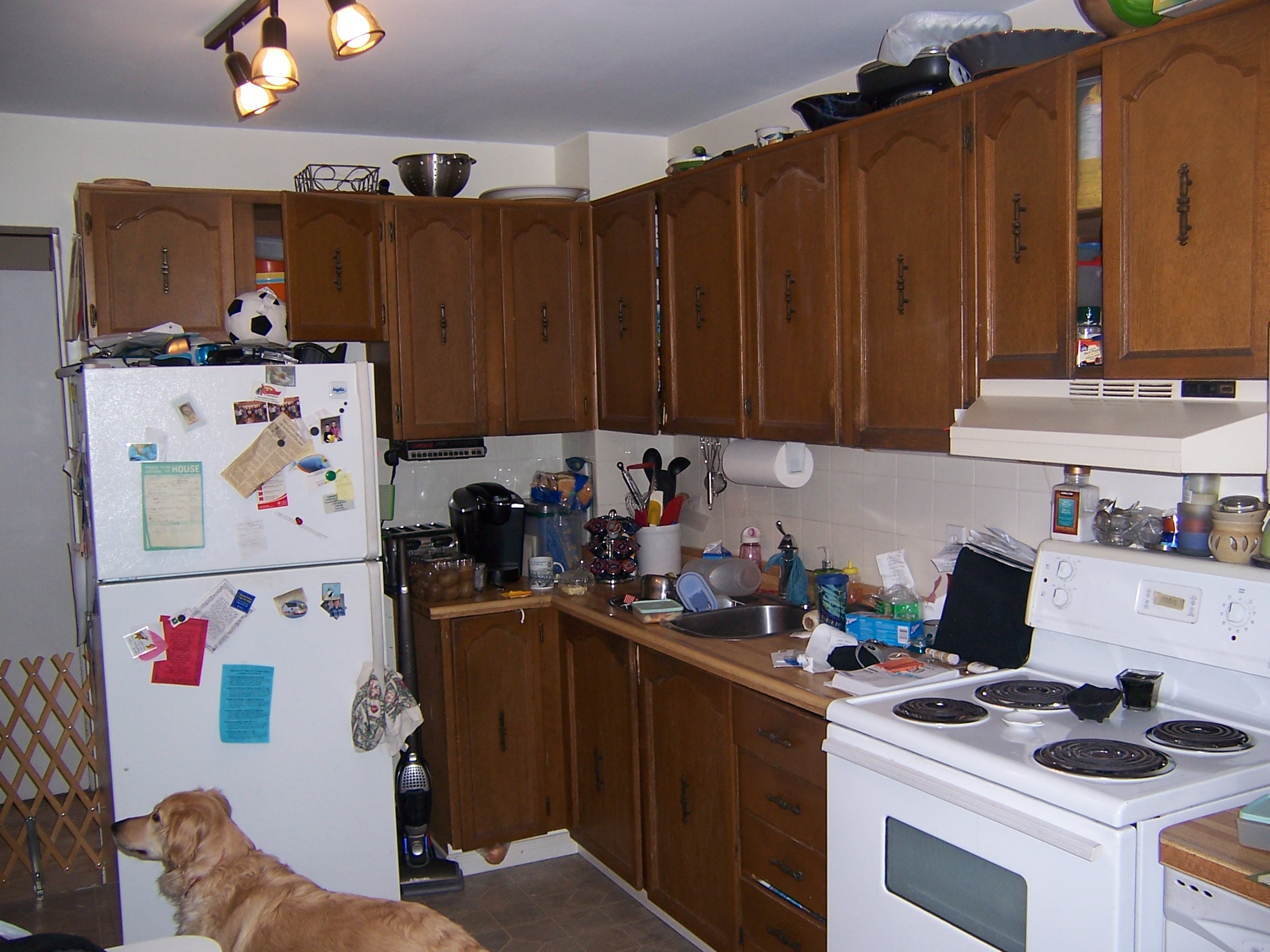 Some re-design of the layout to make better use of the client's activities in the kitchen, as well as opening things up. Complete with tile backsplash, new cabinets to the ceiling, and pantries in the other corners of the kitchen to make best use of the space. This can happen with a custom-built kitchen!